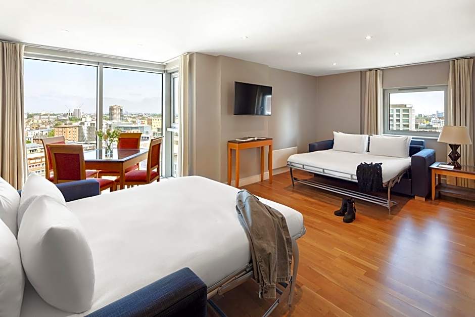 Spacious apartment with striking city views. Full kitchen, spacious living area and free Wi-Fi. Some apartments feature a balcony.